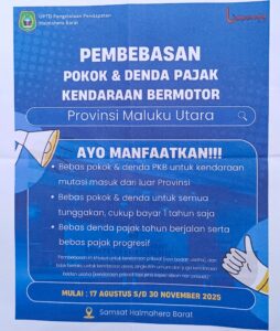 “Program ini diluncurkan gubernur untuk memudahkan serta memberikan keringanan kepada masyarakat wajib pajak. Karena itu, selaku Kepala Samsat Halmahera Barat mengajak masyarakat, mari manfaatkan program ini dengan baik. Kapan lagi kita rasakan program seperti ini,”ungkap Mulyati kepada media ini, Kamis (28/08/2025)